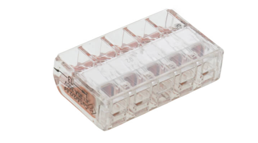 Pull the lever up, insert a conductor and push the lever back down – done! Tool-free and lever-actuated, WAGO's 221 Series wire splicing connectors easily, quickly and safely connect solid, stranded and fine-stranded conductors of different cross sections using two-, three-, and five-wire connectors. These connectors are available in two variants which accommodate 24-12 AWG and 20-10 AWG wire. Opening the levers on the 221 Series requires little effort. This means that you can connect conductors quickly – and without tools! While connecting the conductor, recessed handles on the sides ensure an easy, secure grip on the connector. For peace of mind, you can test the voltage from either side of the connector even when installed – one test point is in the conductor entry direction and the other is on the opposite side. This accessibility provides extremely convenient testing conditions, for a wide range of applications. In addition, mounting carriers are available for every 221 Series splicing connector. Each variant can be mounted vertically or horizontally. Simply secure the carrier by snapping it onto the DIN-rail, or with screws on smooth surfaces. Flexible mounting clamps simplify both connector insertion and removal. Conductors can be conveniently connected and removed before or after inserting a connector into the carrier. One test slot is always accessible to ensure compliance with VDE standards.